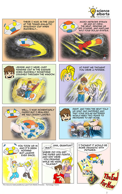 The Science Alberta Foundation requested that a web comic be created to not only teach school-age children a science concept but also entertain them. I presented many comic book concepts before one was selected. SAF provided the topics and I would create a two-page story around that topic. I wrote, illustrated, lettered, and coloured the first six web comic stories.