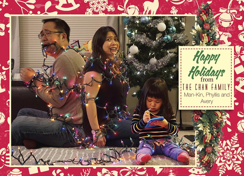 Since the birth of my daughter I have subjected her and my spouse to pose as models for an annual Christmas card as a way to flex my creative muscles. I collaborate with my spouse on the card but do all the photography and design myself.