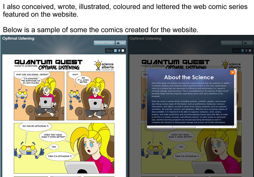 The Science Alberta Foundation required a complete overhaul of its Wonderville website. New science-oriented content needed to be created suitable for school use as well as home use. Content ranged from videos, games, comics to interactive elements on the website. I provided copy content to be used on the website and other channels.